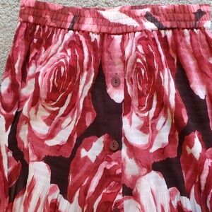 Vintage summer pull on skirt in a sheer floral voile. Elastic waist with decorative buttons in front, it can be dressy or casual with anything on top. all sales final.