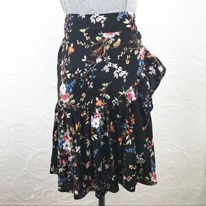 Flirty Black Floral Pattern Ruffled Skirt -XS