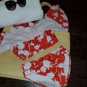 Flirty Ruffled Red and white 2 piece bikini is eye catching!