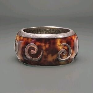 Flli Menegatti Ring 925 Sterling Silver Italy Tortoise Enamel Size 5 Signed.