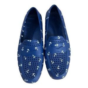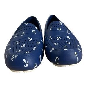 Floafers Men Country Club Boat Water Shoes Blue White Anchor Size 8 Slip On