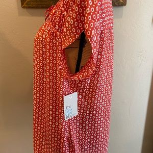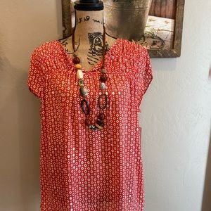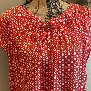 Croft & Barrow Flow Short Sleeve Blouse. New with tags. Dark coral/orangish color and white pattern. 100% Polyester. Ties at neckline it can leave ties loose.m - cute either way. $36 before 20% off coupon