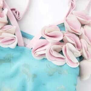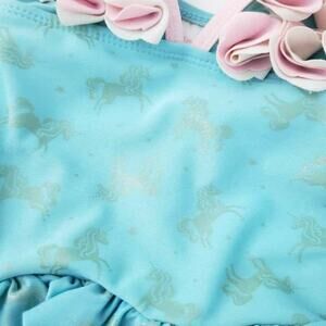 Floatimini Baby Swimsuit Floral, Gold Unicorn One Piece Girls Size 4. Excellent preowned condition, little Girls blue swimsuit with gold unicorns all over and floral 3-d on the chest.