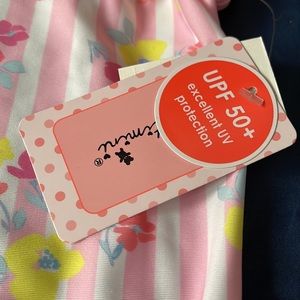 Brand new with tags. Size 6 bathing suit. Swimwear dor your little one. Cute pink and pink with floral print. Ruffle detail shoulders. UPF 50+ perfect for pool days beach days!