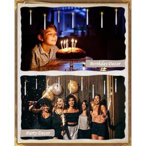 π§Ώπππππ π ππππ ππππππππ - These flameless floating candles effortlessly creat a cozy and inviting lights. The hanging candles lights are not overly bright, perfect for watching movies and still be able to see. Create a captivating romantic atmosphere on Valentine's Day and a soothing warmth during holiday celebrations. They're perfect for infusing your home decor, parties, weddings, birthday, or themed events with a touch of magical charm.