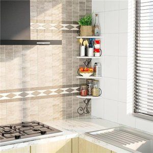 🧿Maximize Optimize Space: Shelves are cut to fit a 90 degrees wall corner, it’s the perfect way to make use of wasted corner space. The max weight capacity of each tier is 8.8 lb (4 KG), 4 tier shelves - total 35.2 lb (16 KG)