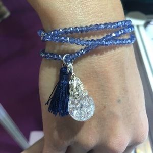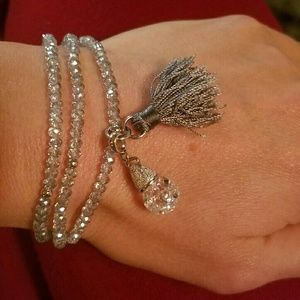 Floating cubic zirconia and sterling silver necklace/bracelet. We also have it in black, gold, grey/blue, and dark blue!