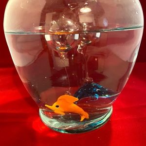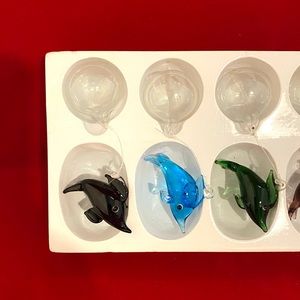 NWOT. Set of six, glass, floating dolphins. Approximately 2 inches each. Each is suspended by its own bubble. Super cute in a fish tank. Set (F)