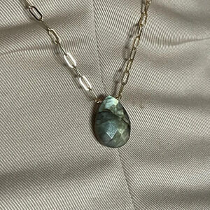 Floating Labradorite Gold Plated Paperclip Necklace