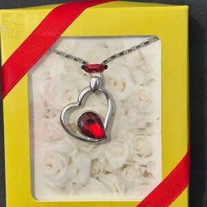 Women of all ages will be delighted by this silver plated heart necklace with a ruby teardrop pendant. Women will be excited to show off this adorable heart necklace. This heart jewelry is suitable for sensitive skin and comes packaged in its own little gift box.