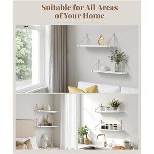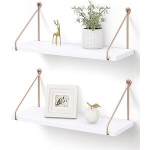 Floating Shelves for Wall, Metallic Gold White Wall Mounted Shelves, Bathroom
