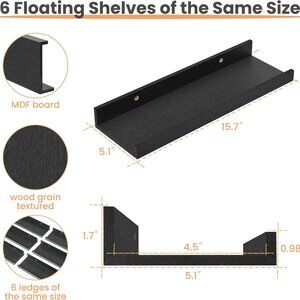 Included Components: 6 Pcs Same Size (L 15.7" X D 5.1" X H1.7") Floating Shelves, Installation Parts (1 Manual, 1 Leveler, 12 Screws, 12 Wall Anchors, 12 Spiral Wall Anchors)