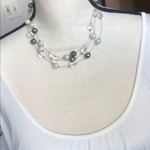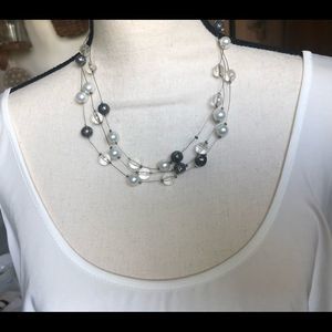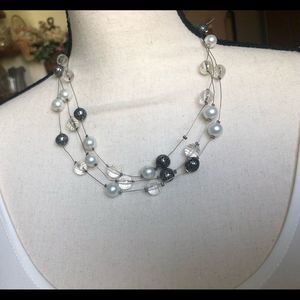 Floating beads on wire clear, gray, white, 16 1/2 in. necklace