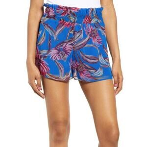 Leith Hawaiian blue floral High Rise paperbag shorts