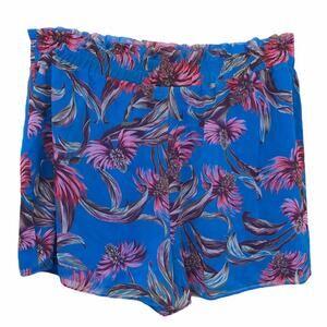 Floaty Paperbag Shorts High Waisted Blue Tropical Floral Women's 2X 3X 4X