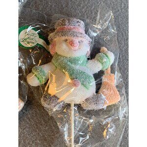 Flocked Snowman Set of 6 Floral Picks Made in Hong Kong Holiday Decor Vintage