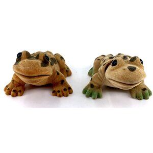 Flocked Turtle Toad Bobblehead Green Brown Bobbing Head Bobble Lot of 2 Vintage 6" long