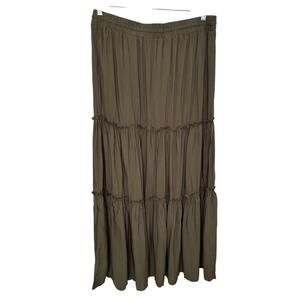 Floerns Army Green Tiered Flowy Midi Pull on Skirt Womens XL