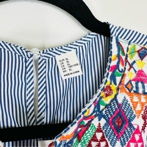 Floerns Ruffle Striped Embroidered Babydoll Blouse