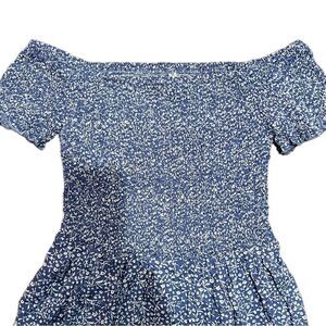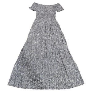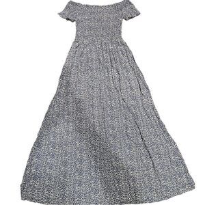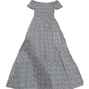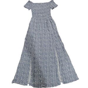 •Features: Off shoulder, ditsy floral, short sleeve, high waist, split, long a line dress
