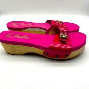 Flogg Women’s Red Patent Leather Wood Wedge Platform Slides with Metal Details Adjustable Strap Platform:Pink/White 1”-Wood Heels 1” Size 8,5 Pre-owned Gently Used Great Condition
