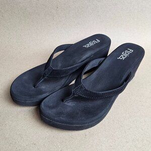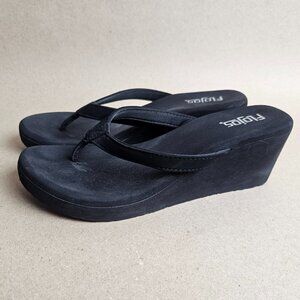 The Flojos Women's Brown Olivia Wedge Platform Sandal is a stylish and comfortable option for summer vacations or casual occasions. This slip-on sandal features a solid black color with a chunky wedge heel and a high heel height of 3-3.9 inches. The synthetic upper material and wedge heel style provide durability and support for all-day wear. Perfect for spring and summer, this Flojos Olivia model is a versatile and trendy addition to any woman's shoe collection.