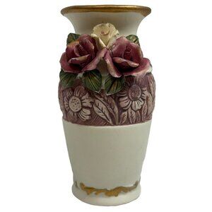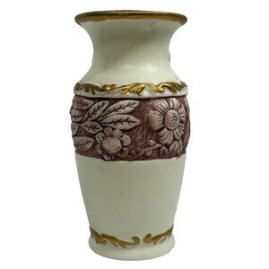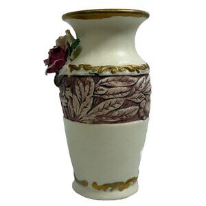 Flomo Ceramic Bud Vase 5.5" Raised Rose Floral Gold Trim Vintage Accent
