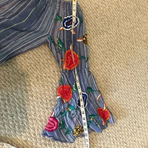 Flont boho sleeveless off the shoulder stunning embroidered and sequins flower belle sleeve shirt size medium blue, red and green. In excellent used condition