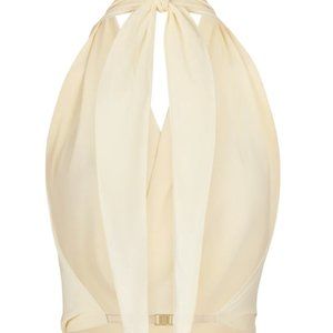 Our elegant Inez Top reveals an air of summer glamor, complete with a halter-style fastening. Flowing fabric and a backless silhouette further add to the allure.