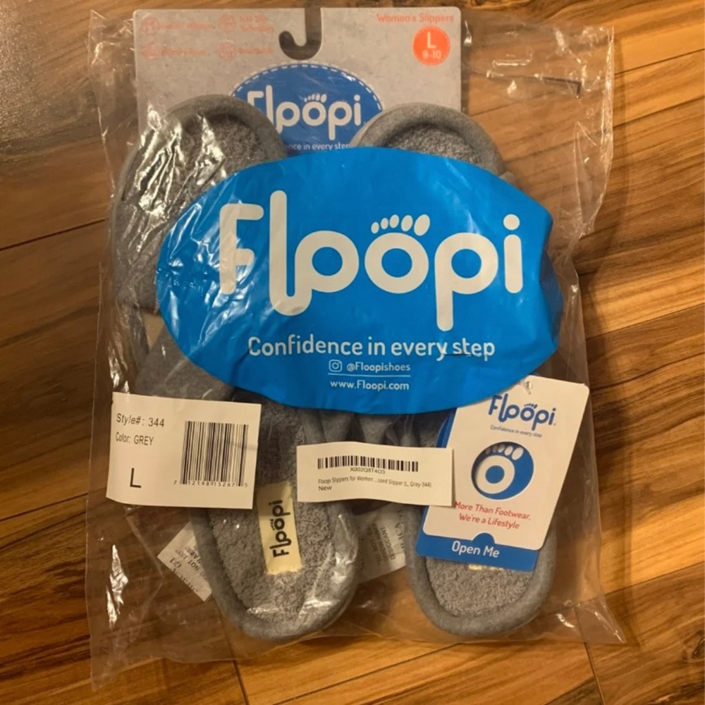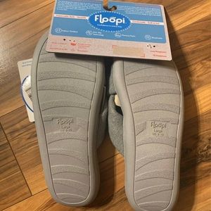 Brand new grey floopi slippers, size large (9-10)