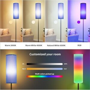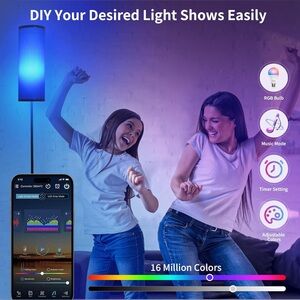 Dynamic RGB Mode: To use this RGB floor lamp, start by turning it on with the foot switch. After that, you can control it with either a remote or a smartphone app. The lamp offers 16 million colors to choose from, and you can easily adjust the brightness and color modes. It also includes a 30-minute timer feature, which you can set using the remote or the app.