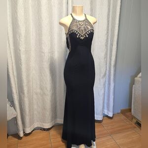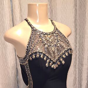 Floor Length Betsy & Adam Prom Dress ~ Black Size 2 ~ Beaded ~ Open Back