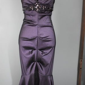 Floor Length Gray Shimmer Deep V & Fishtail Dress
