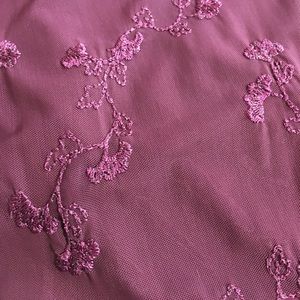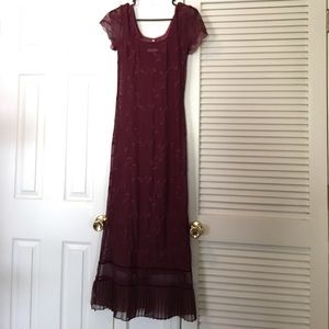 Beautiful date night sheer with slip burgundy dress. Great condition. Flower pattern. Finish this beautiful dress with some black strapped heels! So fun and as I say "girly". Also being a photographer (not with phone as you may tell hahaha) I think this is the perfect dress if you are planning a photo shoot.