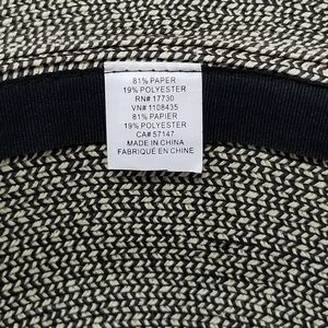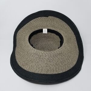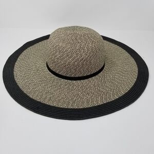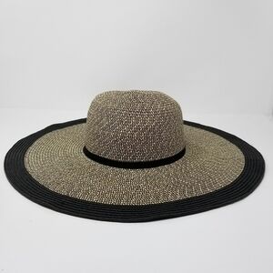 Floppy Wide Brim Sun Beach Hat Marled Black Natural Chevron Woven Paper Band