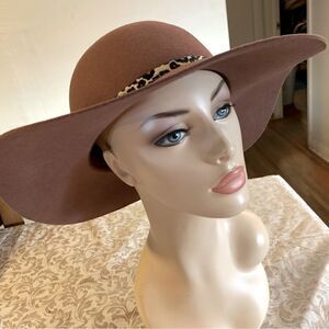 Floppy Wool Hat Caramel Color w/ Cheetah Design Hatband OSFA gorgeous