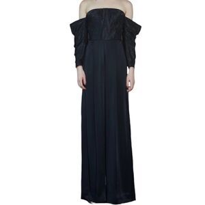 Flor Et Al Off Shoulder Taffeta Polyester Jumpsuit Formal Black Tie 4 NWT $695.