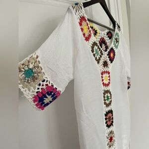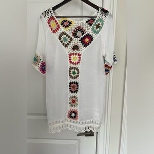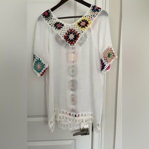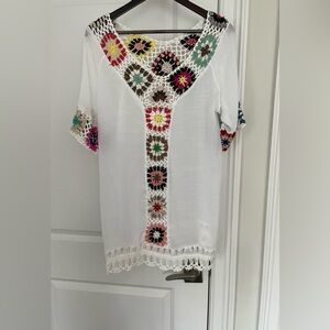 Flora Ashley Lucid White Cover Up Tunic Top with Crochet Details Sz. S Excellent like new condition