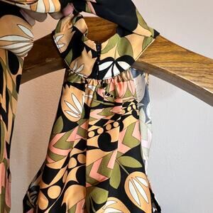 Flora Bea NYC Designer Tyla Top Giddy Up 100% Silk Halter Abstract Top Size M