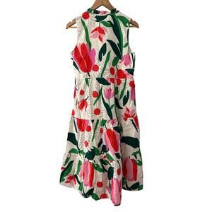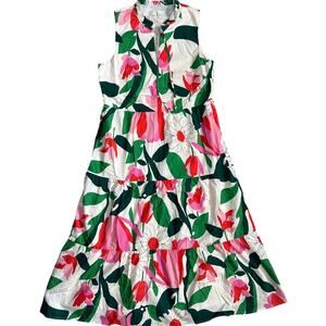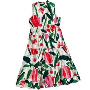Flora Bea NYC Reeta Honolulu Poplin Colorful Floral Tiered Dress Size Small