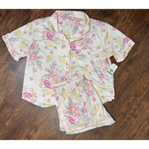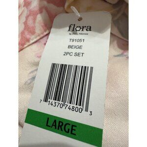 Flora By Flora Nikrooz Size L Womens 2 Piece Short Pajama Set Beige Floral
