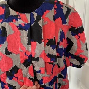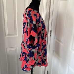 Flora Kung II New York Silk Vintage Blouse. Size 10. Kimono short sleeves. 100% silk. 80s. Key hole button in the back. Bright colored and a bit eclectic 💗 A fabulous bold vintage blouse that could be worn to work under a dark blazer or out for a date night with black flared denim. Beautiful condition. A unique find.