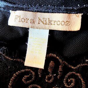Flora Nikrooz Black Long Nightgown Gown Lace Adjust Strap Sheer Portion Tie sz L