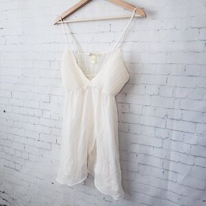 Flora Nikrooz Chiffon Nightie Lingerie Ivory Off White Size M Micro Pleats. Semi sheer nightie with micro pleating detail at the bust. Has adjustable straps. Very good preowned condition, no flaws.