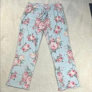 Charming pajama top by Flora Nikrooz. Light blue with pink floral design. Soft and cozy for relaxation.