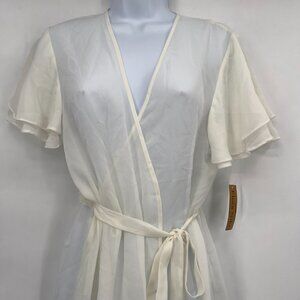 Flora Nikrooz Ivory Sheer Wrap Belted Short Robe Cover-Up – Women’s Size S/M NWT