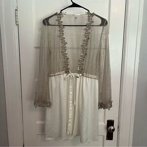 Flora Nikrooz Lace Bridal Robe, size XS. In excellent condition, a few minor imperfections in the bottom of the robe as shown in photos.