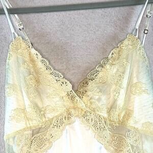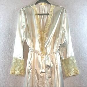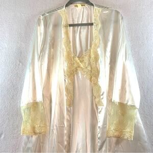 Flora Nikrooz Satin Lace Robe Chemise Slip 2pc Set Ivory Cream Bridal Lingerie