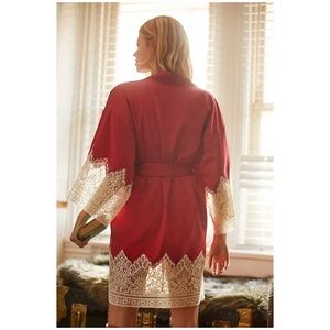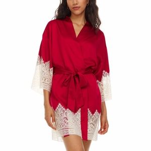 Flora Nikrooz | Satin Lace-Trimmed Robe | NWT