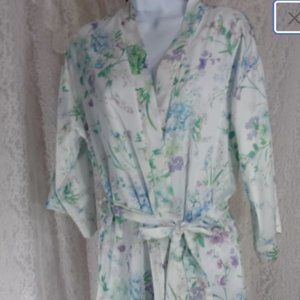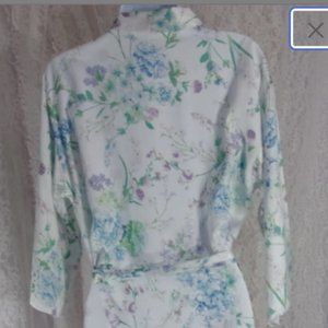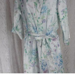 Flora Nikrooz, Short Robe White Satin, Hydrangea Purple Floral NWOT